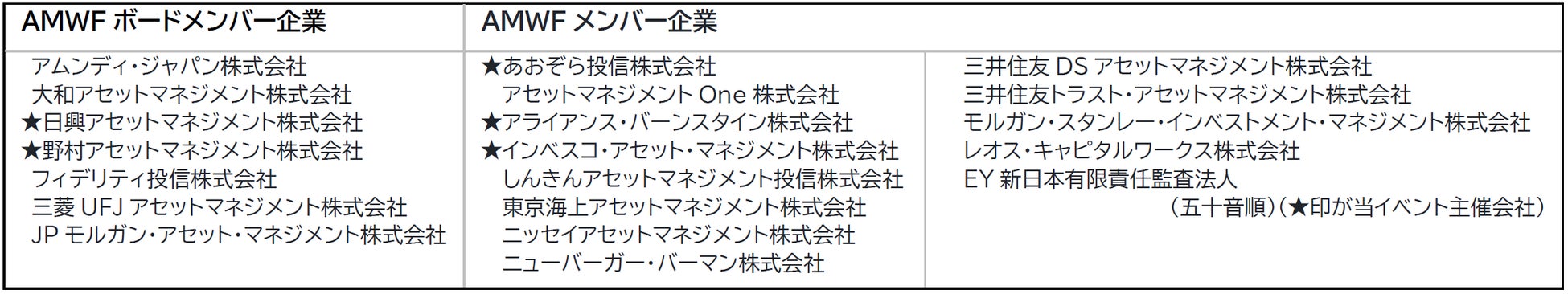 Asset Management Women’s Forum(AMWF)参画企業20社