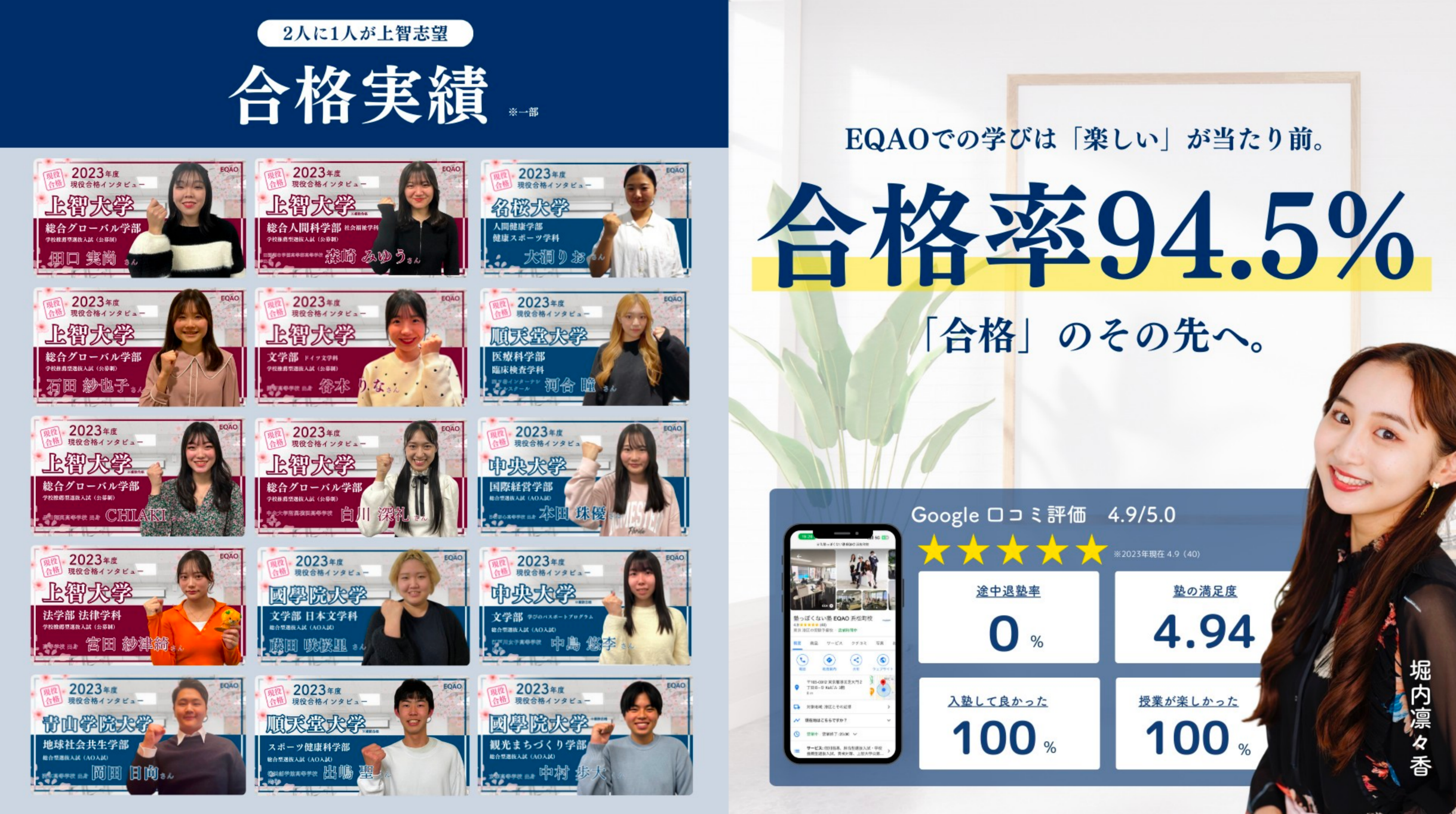 「すきを見つけて、すきを伸ばす。」これからの「個」が尊重される社会に相応しい教育を提供するため全力で活動しています。数学、古文などのテストの点数でその人の価値を決めるのではなく、総合的な人間力でその人の価値が決まる時代。弊社は、非認知能力という人間の根幹にある目に見えない力を育むと同時に、総合型選抜•学校推薦型選抜入試の対策を行う【塾っぽくない塾 EQAO】の運営を行なっております。