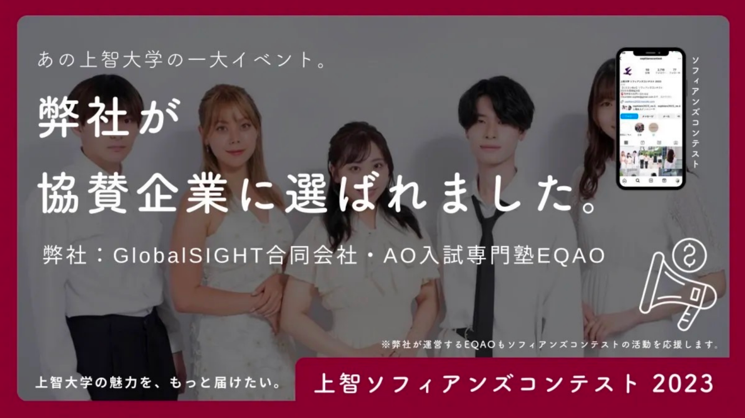 浜松町にEQAO本校舎がありますので、塾講師として働きたい、教育関係の仕事に携わりたいなと考えている方は、是非校舎まで遊びに来てください。弊社は、教育の可能性をとことん信じ、追求していきます。今回弊社は、代表の玉村が、上智大学出身ということもあり、ソフィアンズコンテスト実行委員会の活動費の一部負担という形でイベントの運営に協賛させていただきます。