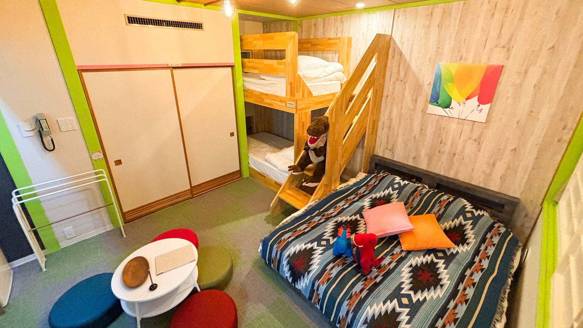 楽しい2段ベッドとゆったりサイズのダブルベッド。ファミリーやカップルにおすすめ