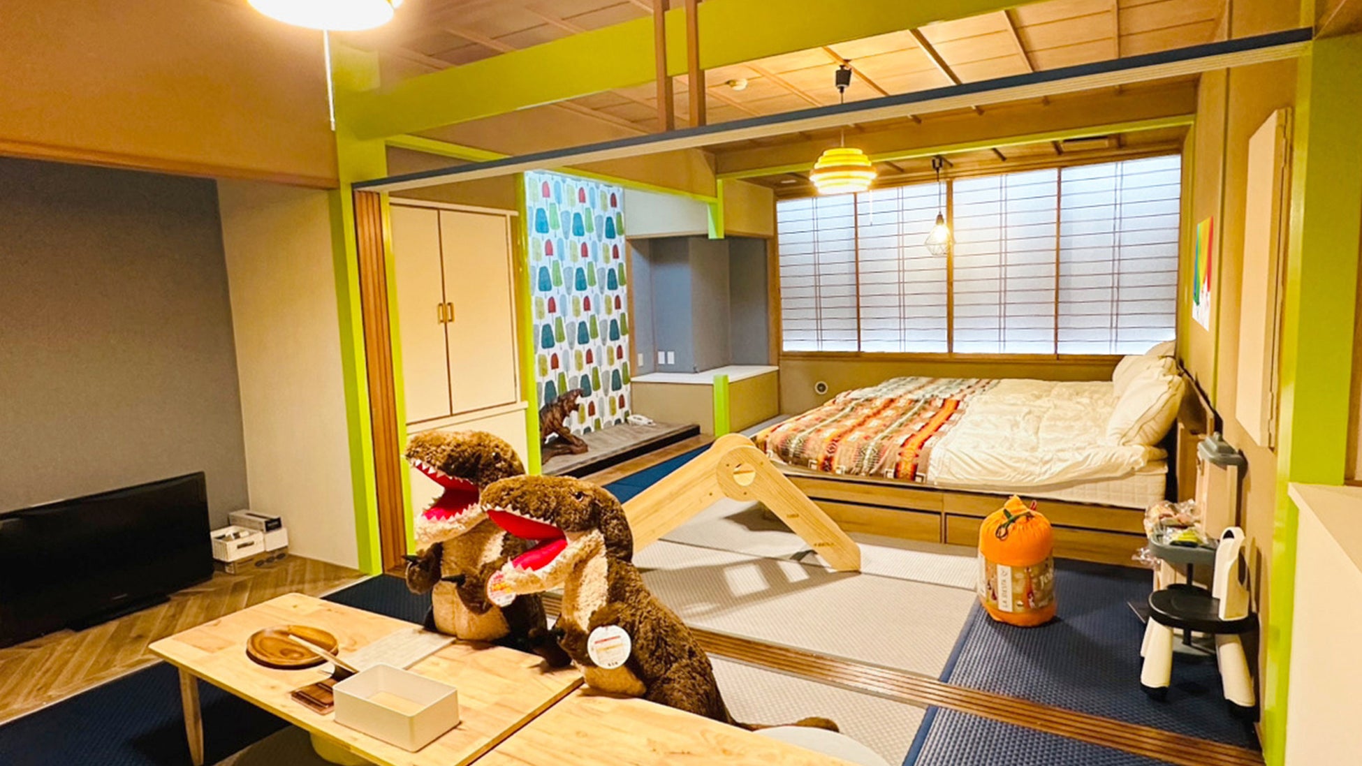 畳と障子の落ち着いたゆったり広い空間で寛ぐファミリー向けの和洋室