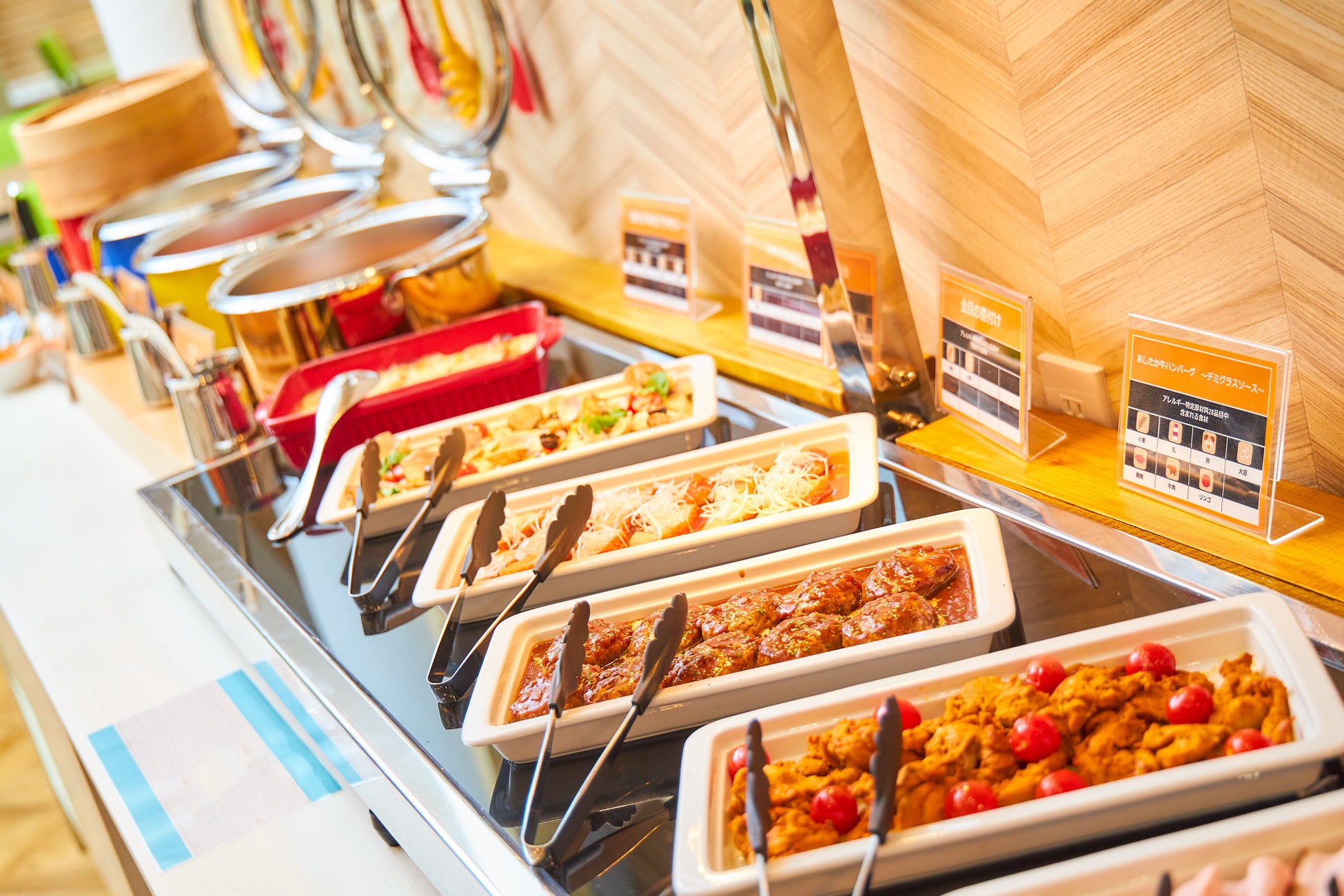 子供から大人までみんなが楽しめるビュッフェ料理を用意しております。ソフトドリンクからアルコールも飲み放題です。