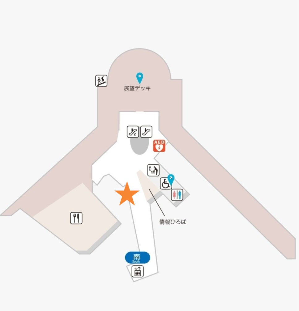 福岡市博多区大字下臼井778-1「福岡空港」国内線旅客ターミナルビル4Fの展望デッキに隣接するエリア
