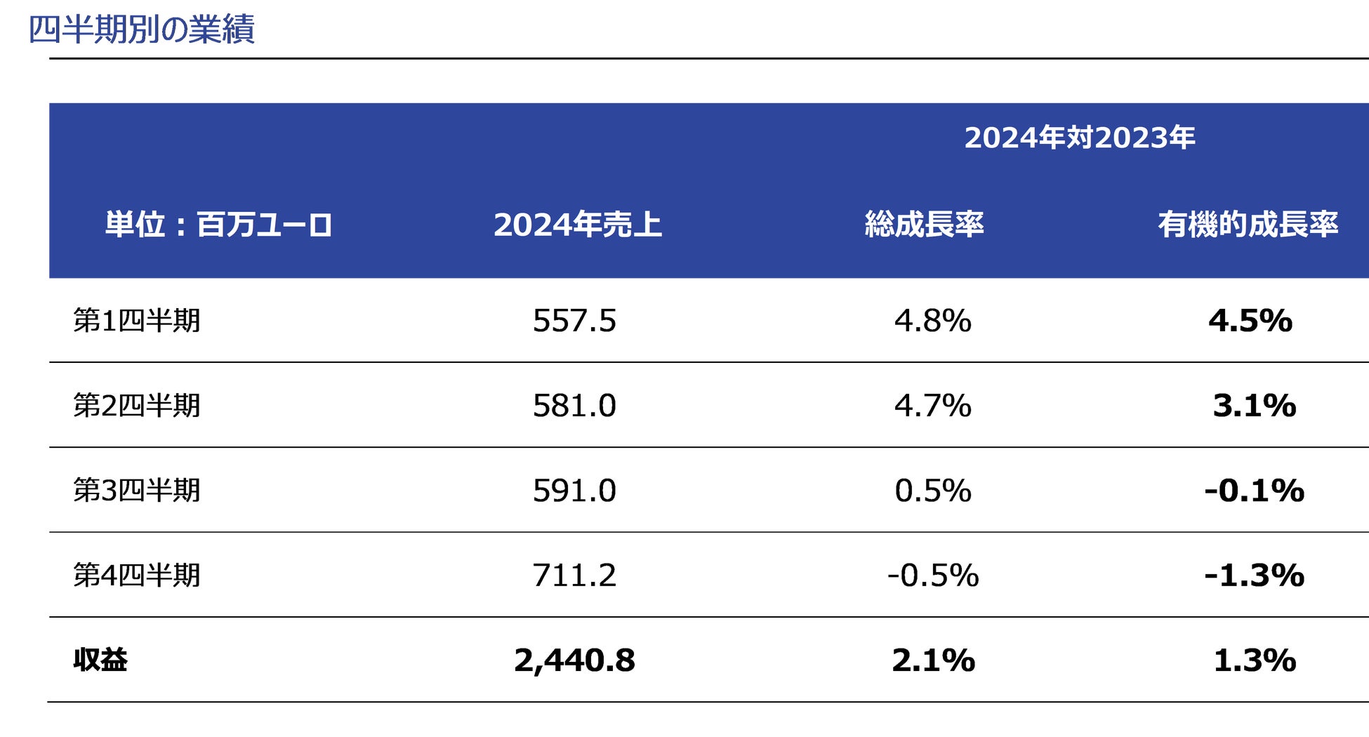 売上高:24億4,100万ユーロ(2023年比2.1%増)