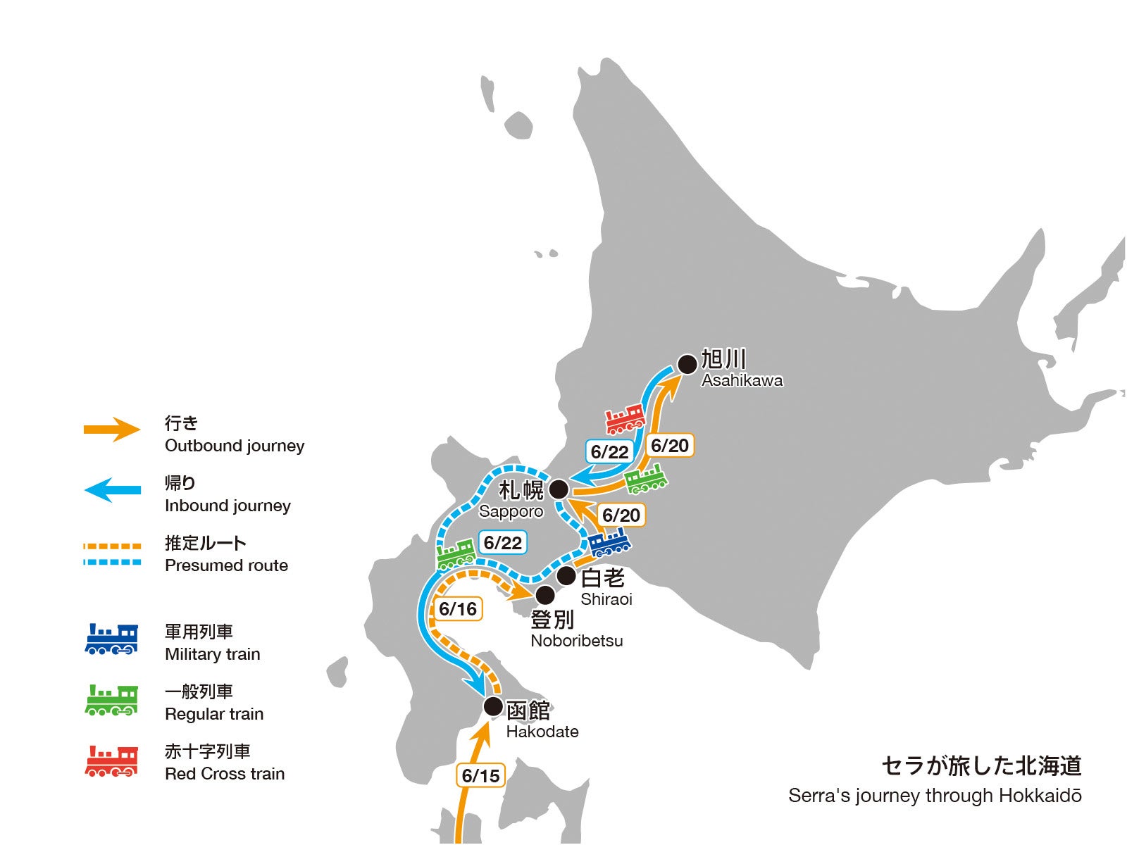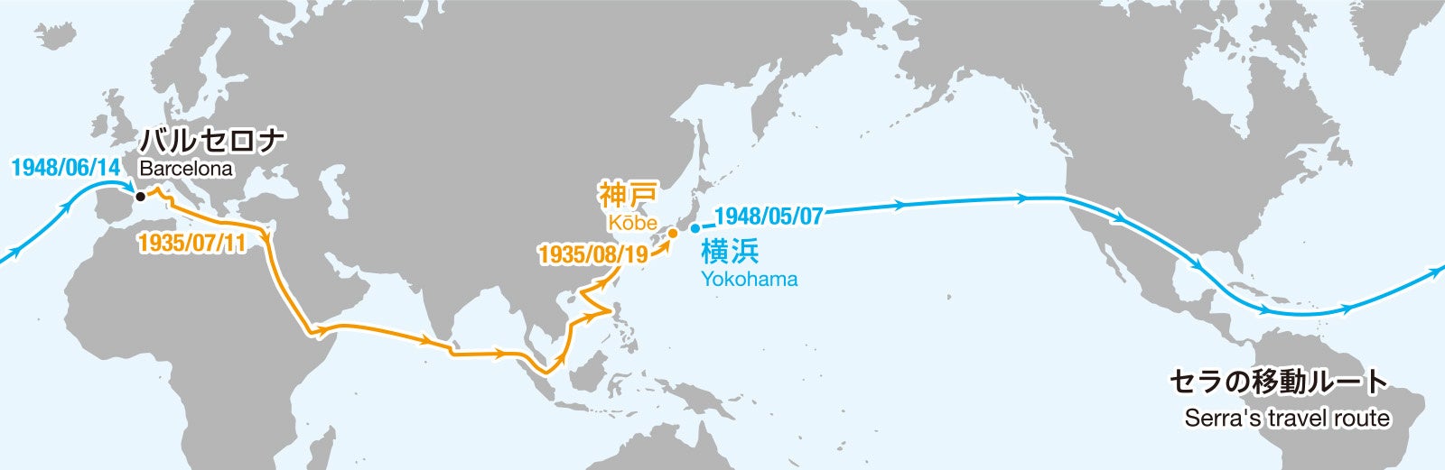 1947年には、北海道への待望の旅を実現する機会を得ました。北海道滞在の際にセラ自身がつくった彫刻、絵、写真および収集した物が、現在、カタルーニャを中心に保管されています。