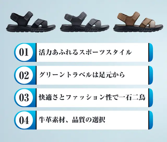 私達のサンダルデザインは、スポーツ要素を融合し伝統的な夏のカジュアルスタイルに活力を与えます。