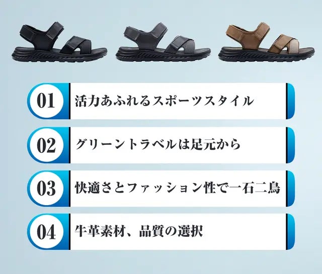 今日は涼しい夏を楽しむための、環境にも優しい牛革の新しいスポーツサンダルをご紹介いたします。