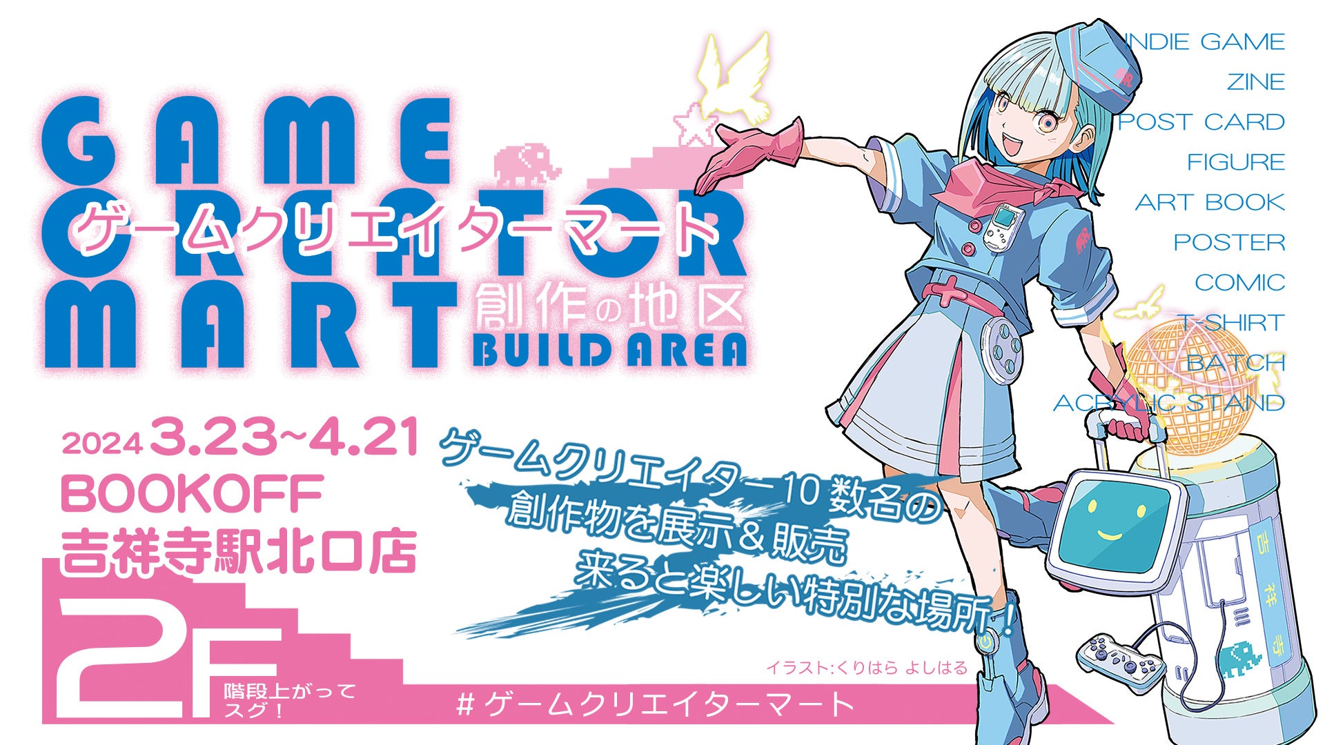 ゲームクリエイターたちのグループ展、来ると楽しい特別な場所!「ゲームクリエイターマート~創作の地区~」2024年4月21日(日)までBOOKOFF吉祥寺駅北口店にて開催