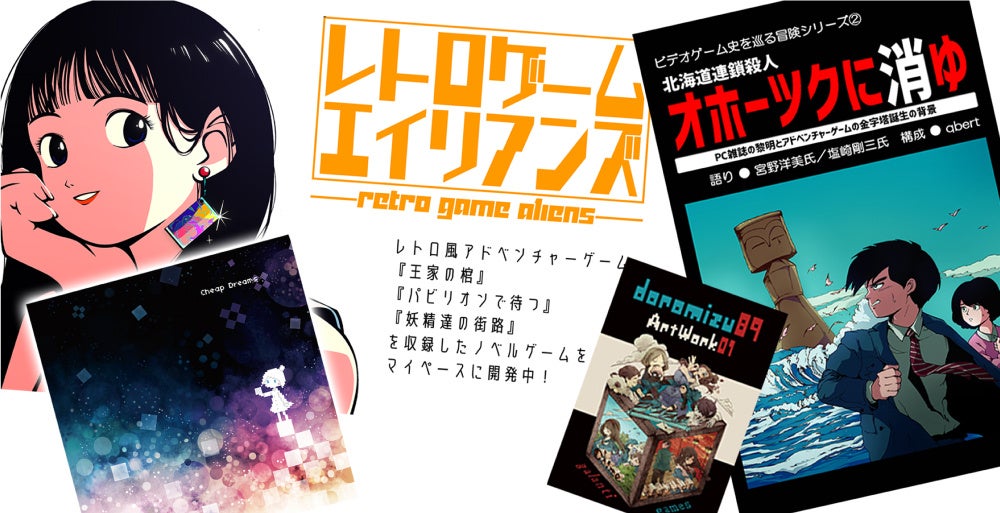 サークルで制作中のゲーム『レトロゲームエイリアンズ』に参加しているアーティストの作品(画集、音楽CD)も委託販売します。