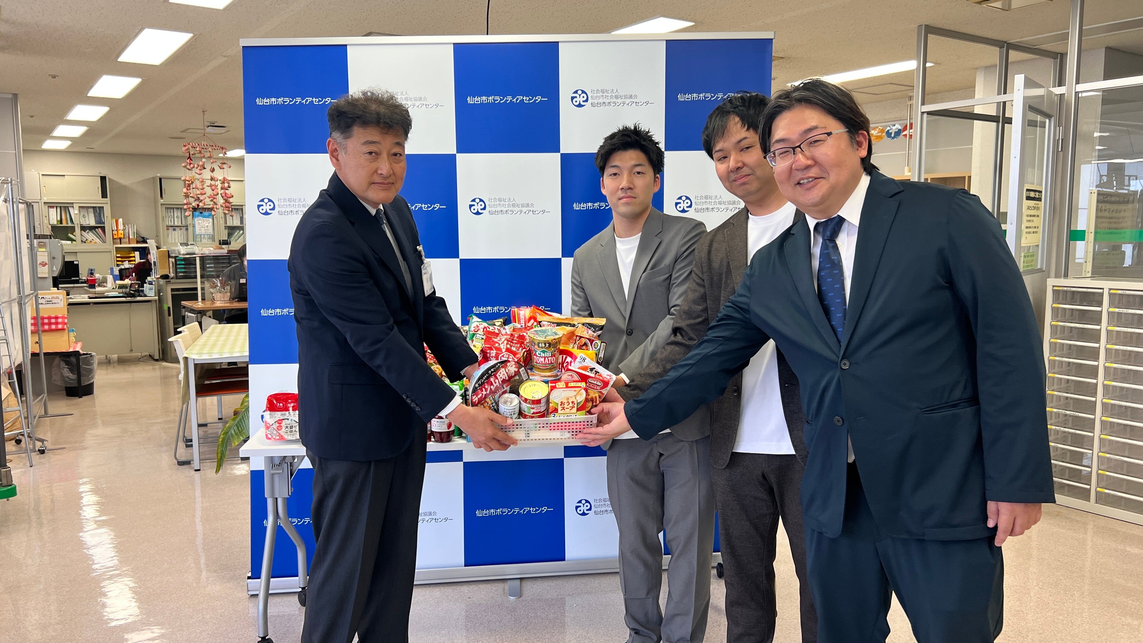 仙台市社会福祉協議会を通じて食品を無償提供。地域社会への貢献を促進。