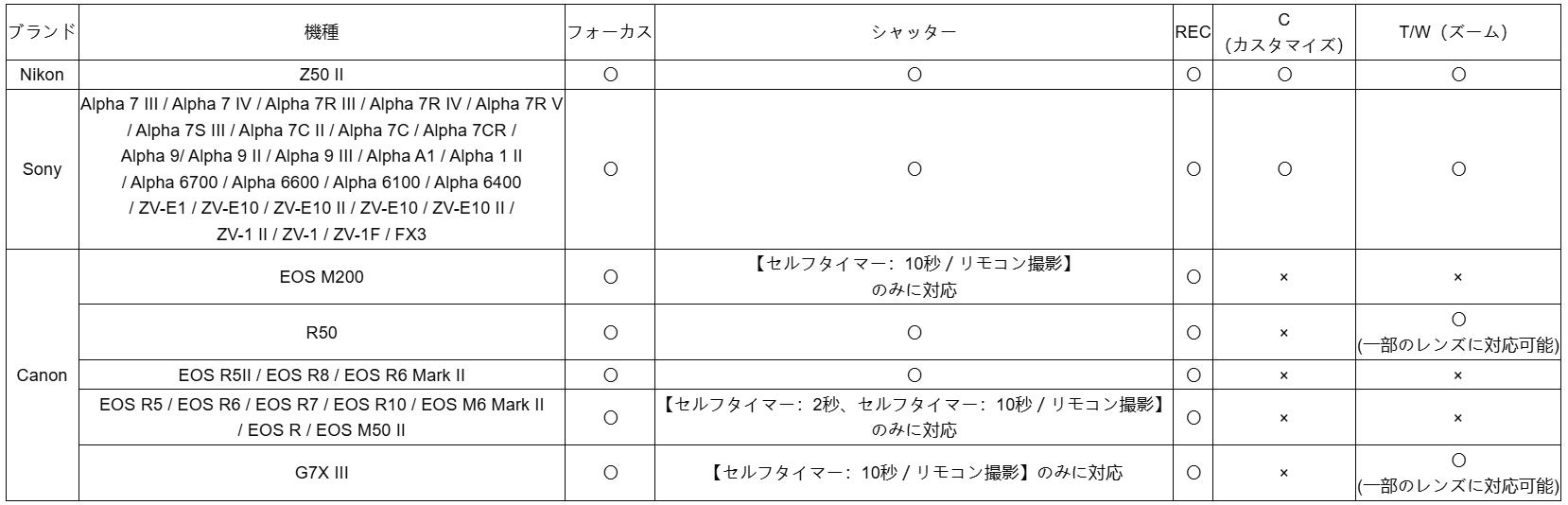 本製品は、Nikon Z50 IIをはじめ、SonyやCanonの一部のカメラ機種のリモート操作が可能で、カメラグリップ、自撮り棒、卓上三脚としてご使用いただけます。