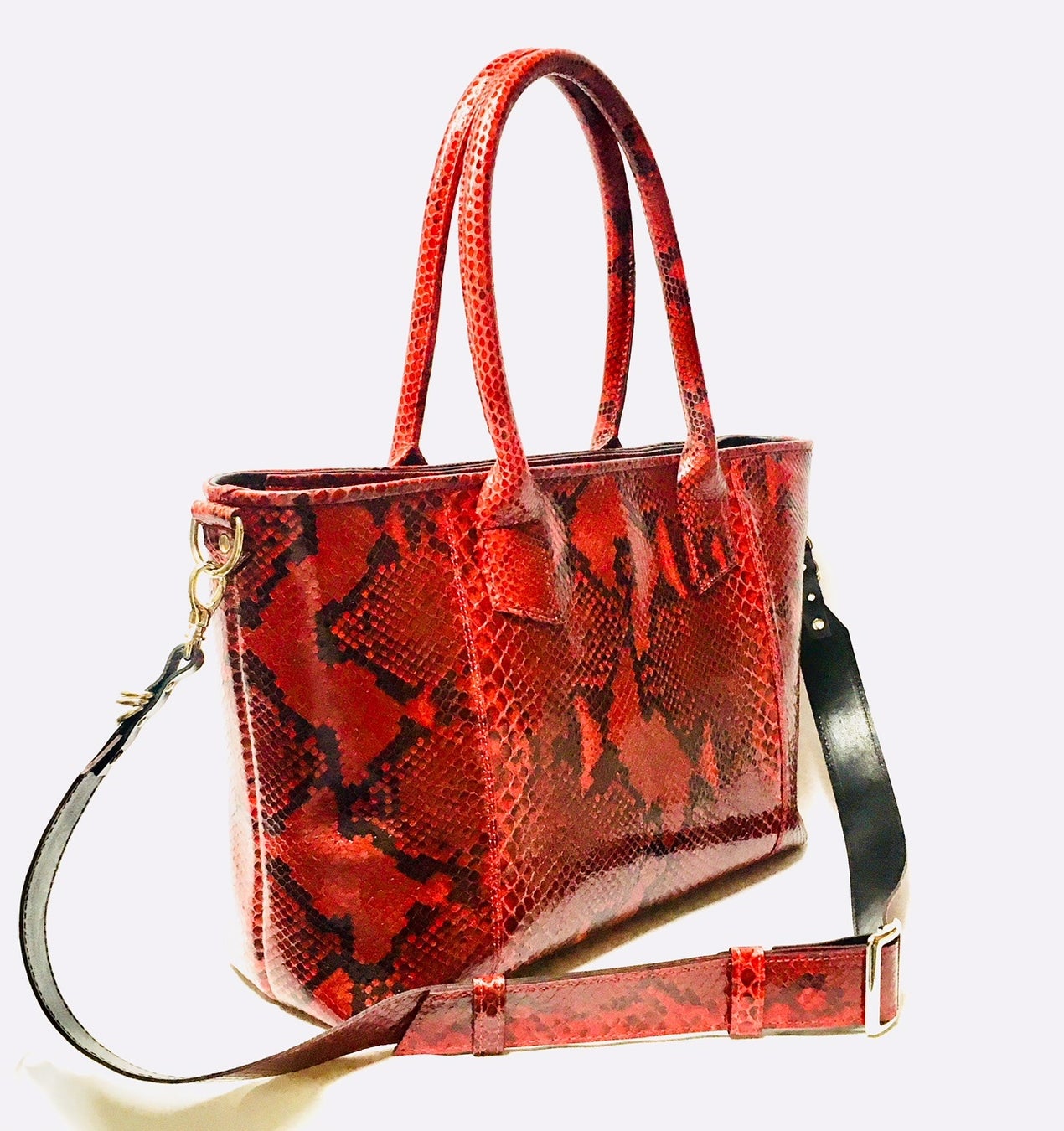 「私の中では、エキゾチックレザーでもオーストリッチやリザードのバッグや財布は富裕層の方が持つイメージ。パイソンはデザインにこだわりのある個性的な方が持つイメージです。野性味のあるエッジの利いた表現はパイソンを凌駕するものはありません。他の皮革のバッグは服を決めてからバッグを選ぶことが多いと思いますが、パイソン好みの方は、まずバッグを決めて服をスタイリングする。そんなバッグを主役にする方も多い気がします」