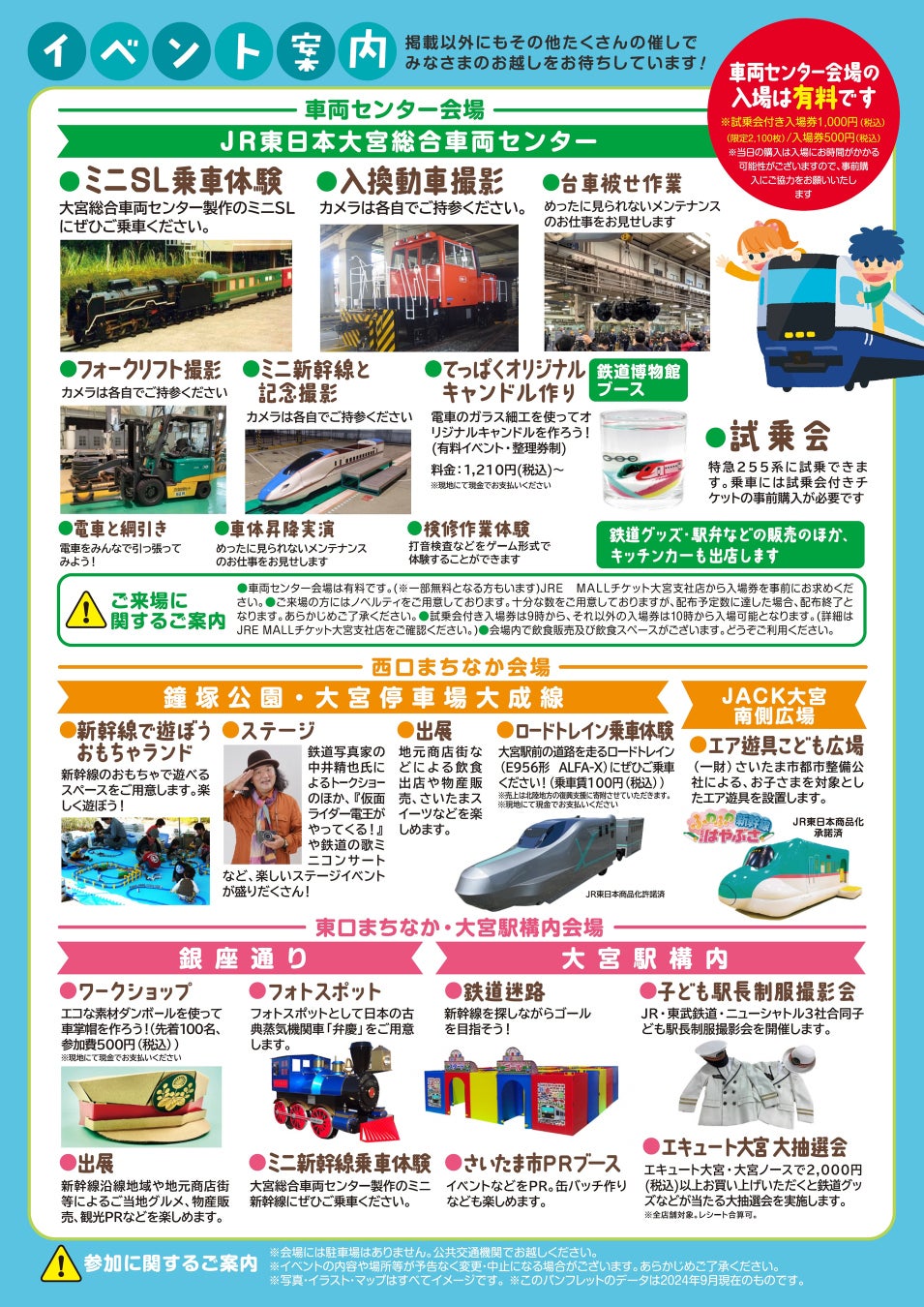 ステージイベント、地元商店街・さいたまスイーツ・さいたま市伝統産業事業所等の出展、新幹線で遊ぼう おもちゃランド