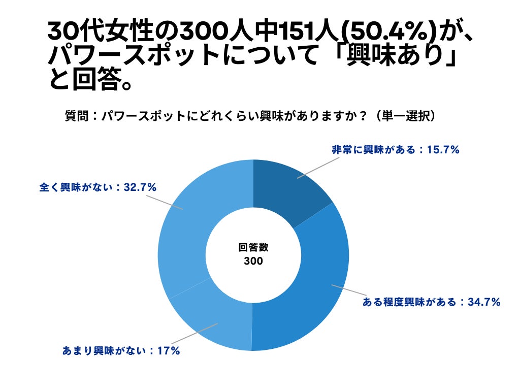 30代女性の300人中151人(50.4%)が、パワースポットについて「興味あり」 と回答【パワースポットに関するアンケート】