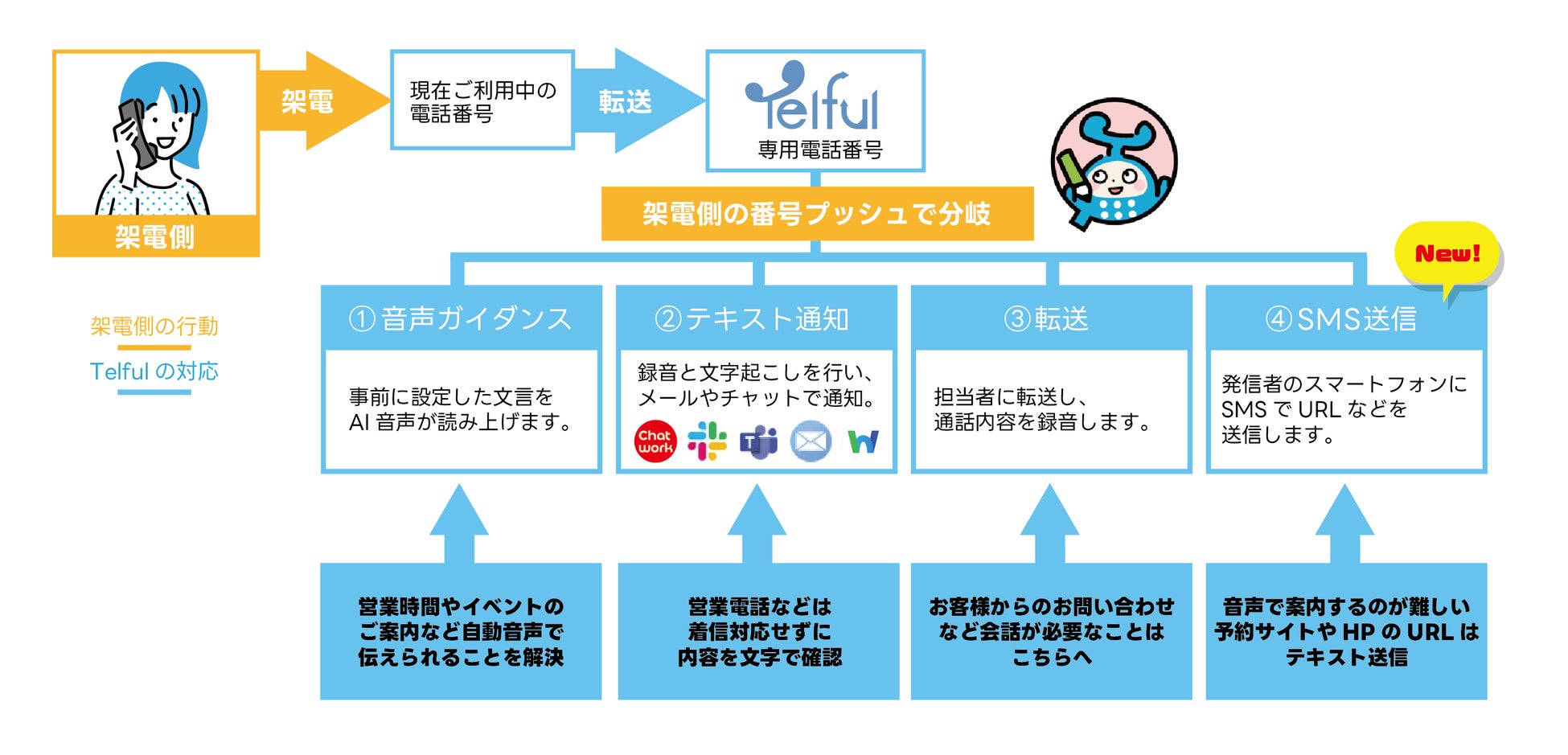 下図は大まかにTelfulの振り分け機能についてまとめたものです。