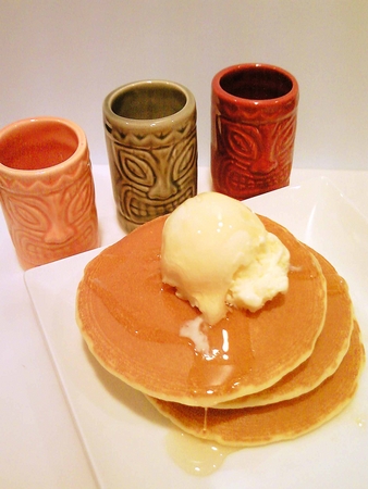 特 徴 :冷たいアイスクリームがのった熱々のパンケーキ。「モナモナパンケーキ」のモナモナはタヒチ語で甘いという意味です。パンケーキには、ノニエッグを使用しています。