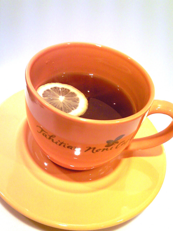 特 徴 : レモネード風味のノニリーフティーに、ハチミツ漬けレモンを浮かべたホットレモンティー。
