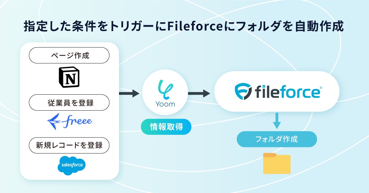法人向け国産クラウドストレージ「Fileforce」がハイパーオートメーションツール「Yoom」とAPI連携開始