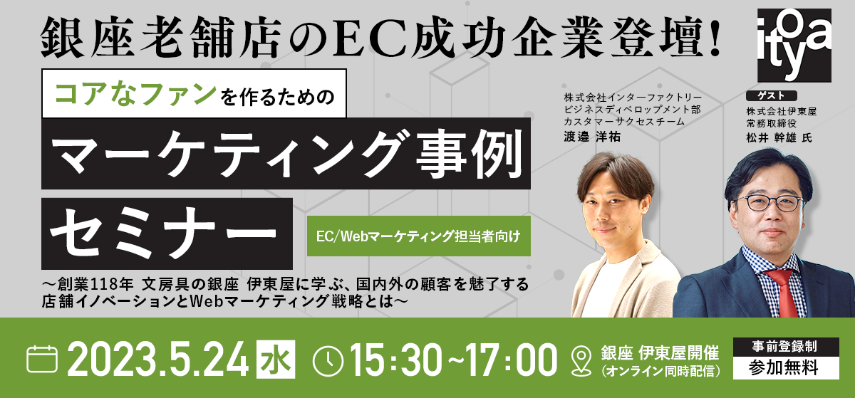 - EC/Webマーケティング担当者向け|銀座 伊東屋登壇!コアなファンを作るためのマーケティング事例セミナー
