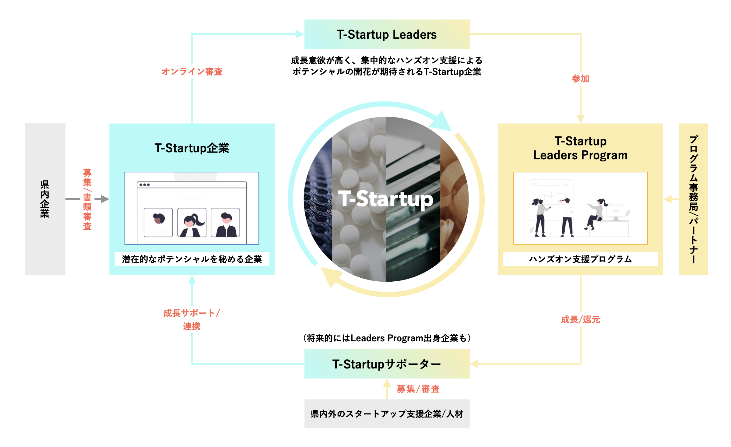 富山県内のスタートアップ企業の飛躍的な事業成長を目指した集中的支援を行うハンズオンプログラム「T-Startup Leaders Program 2022」。参加企業の募集を7月6日より開始予定。