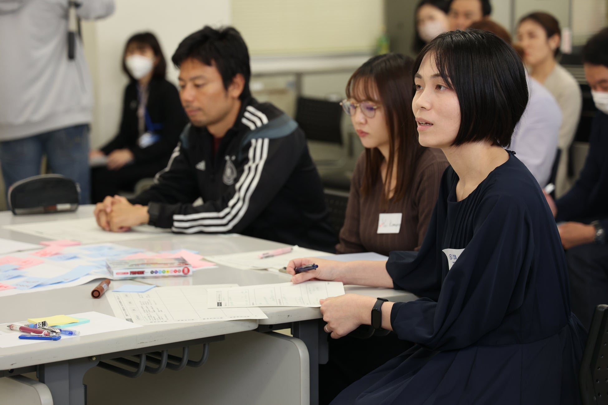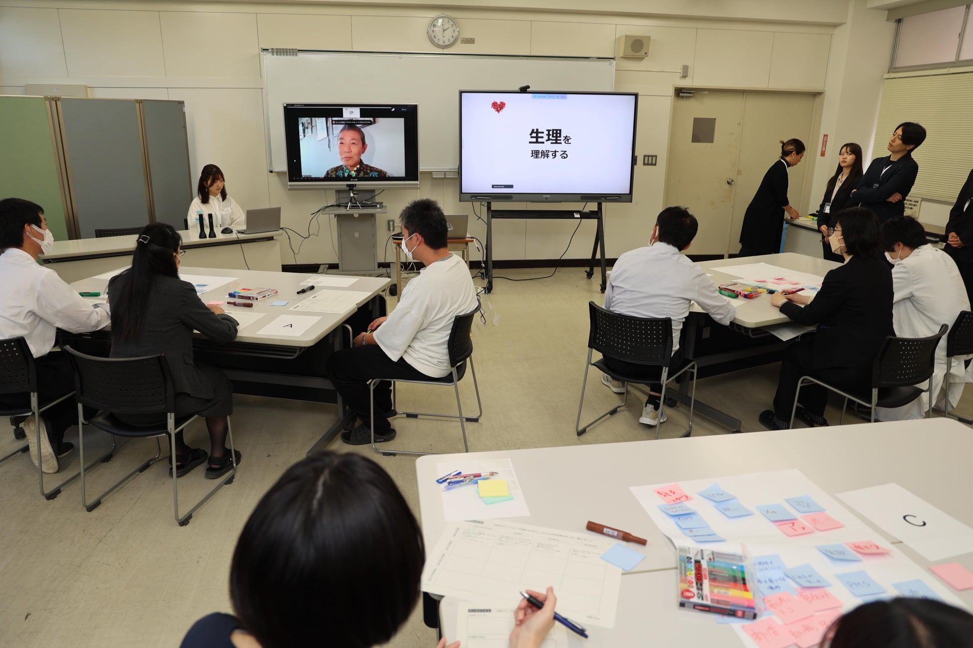 授業実施に向けて、10月18日(水)に、学校生活の中で日々生徒と向き合っている教員が生理・生理痛について改めて学び、生徒が取り組みやすくなるアイデアを出し合うためのセミナー・ワークショップを開催。同高校の1年生の担任や養護教諭など、計9名の教員が参加しました。