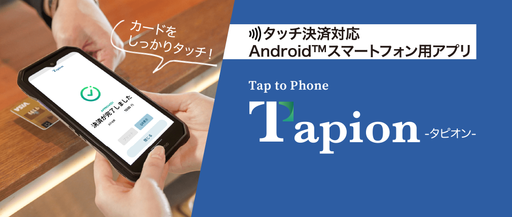 Tap To Phoneは市販のスマートデバイスを決済端末に変える技術で、Tapionはこの技術を用いて開発された決済ソリューションです。主要な国際クレジットカードブランドカード*2や電子マネーに対応しており、端末紛失時の遠隔ロック機能や、タッチ決済に適したAndroid端末の選定、独自のセキュリティ対策を完備するため専用の決済センターを構築するなど、安全に利用できる環境を整備しています。