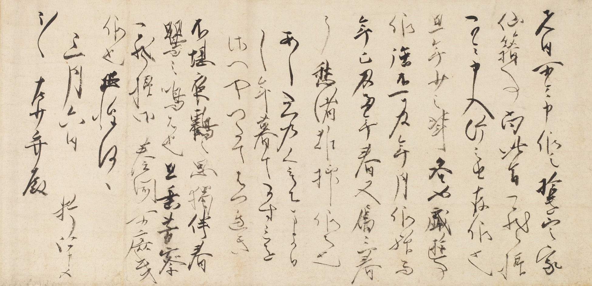 重要文化財 藤原俊成自筆消息案 文治2年(1186)香雪美術館蔵 |