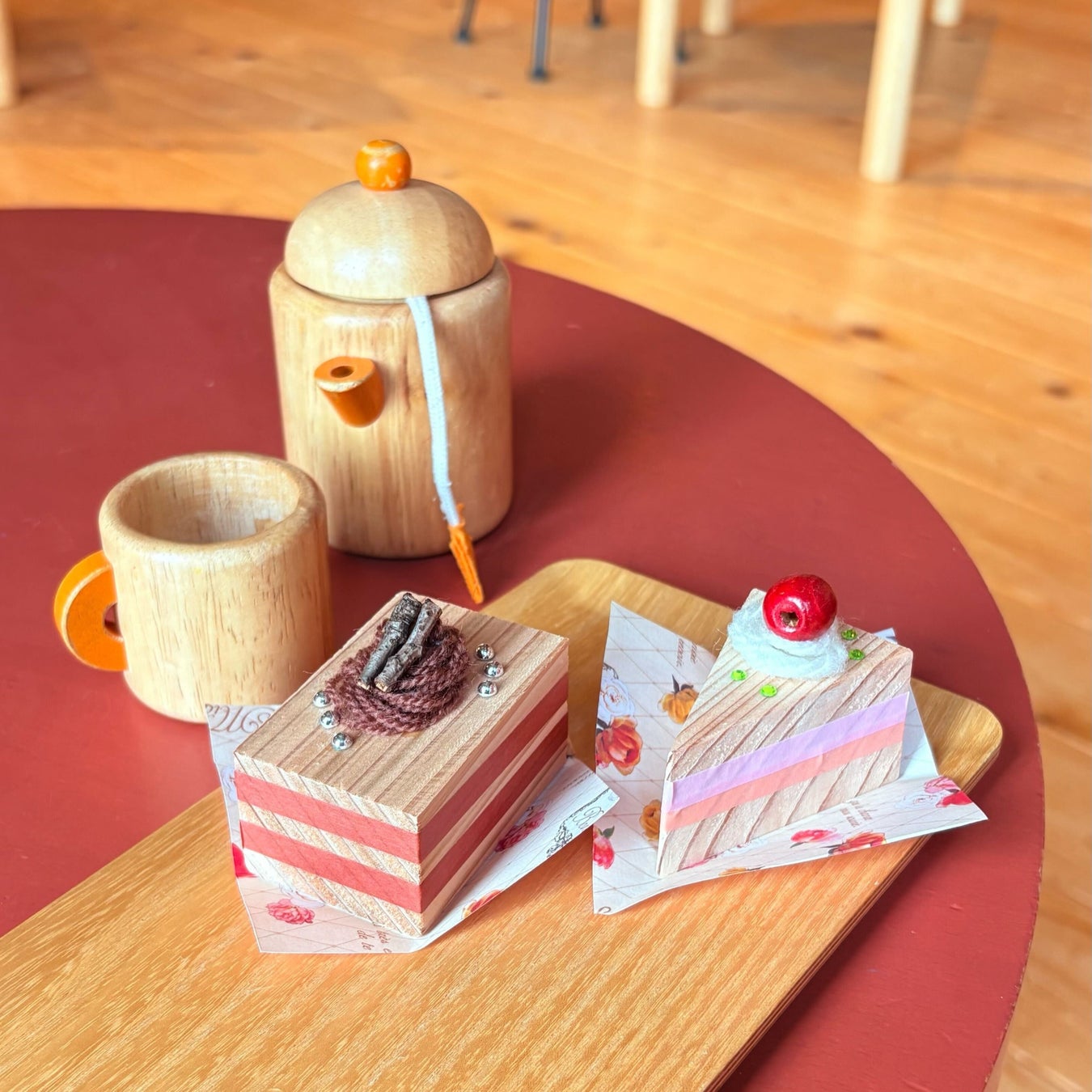 国産のスギ材を使って、“木のケーキ”をつくるワークショップも開催します。スギ材の端材をベースに、毛糸やマスキングテープ、木のパーツなどを自由に組み合わせて仕上げ、小さなお子さまでも簡単に参加できるのが特徴です。