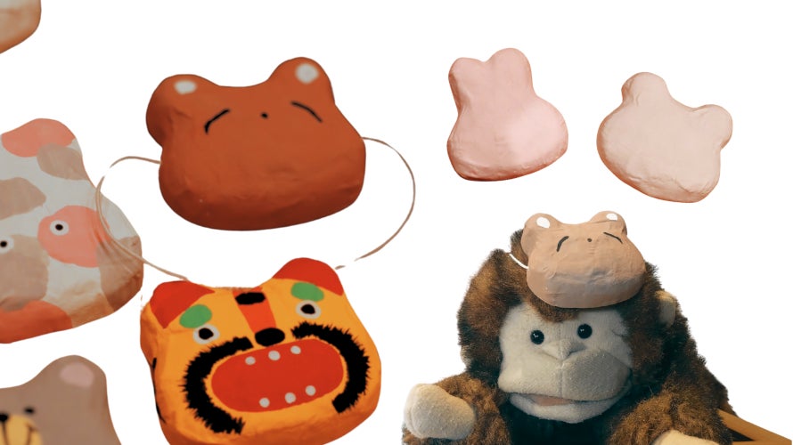 今年は大人向けに「男だるま」「姫だるま」と、子供から大人まで楽しめる張子のミニお面に絵付けの体験ができます。ミニお面の張子は博多張子の技術を用いてこどもでも気軽に体験ができるよう、三浦さんの提案で完成したものになります。人形サイズ(約6㎝)のミニお面で、昨年のワークショップでは自分で作ったお面を自ら頭につけて写真を撮るこどもたちの笑顔が輝いていました。