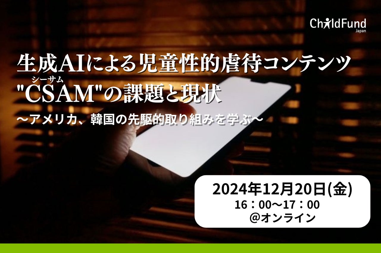 特定非営利活動法人チャイルド・ファンド・ジャパン(東京都杉並区、事務局長:武田勝彦)は、子どもへのオンライン性搾取をなくす取り組みの一環として、オンラインイベント『生成AIによる児童性的虐待コンテンツ”CSAM”の課題と現状 ~ アメリカ、韓国の先駆的取り組みを学ぶ~』を開催します。