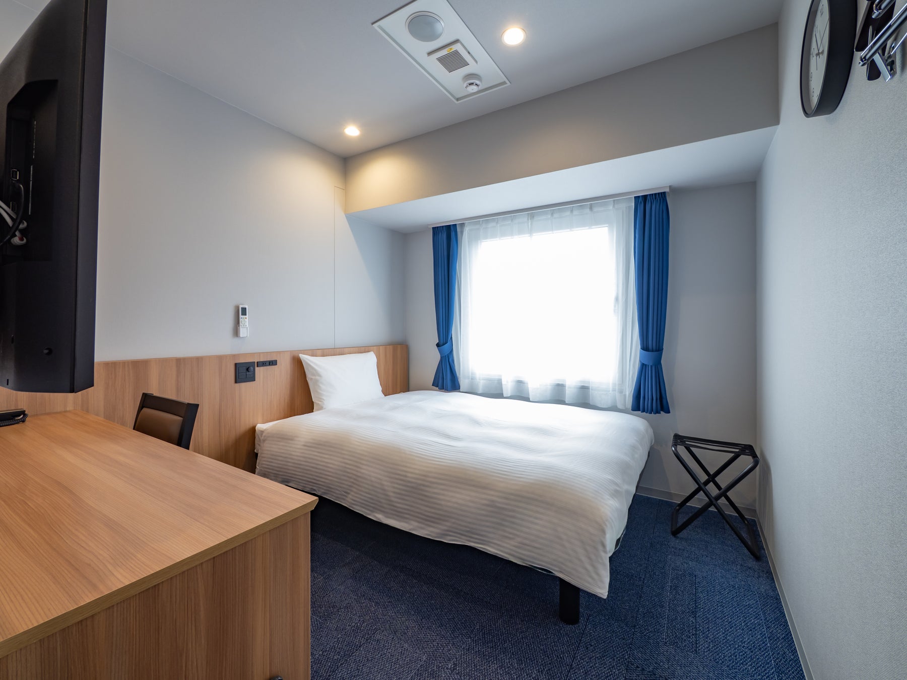 「東横INN浜松駅南口」の客室にはダウンライトを採用し、さらにヘッドボードや吊戸棚を設置するなど最新の仕様になっています。よりスタイリッシュに進化した東横INNをお楽しみください。