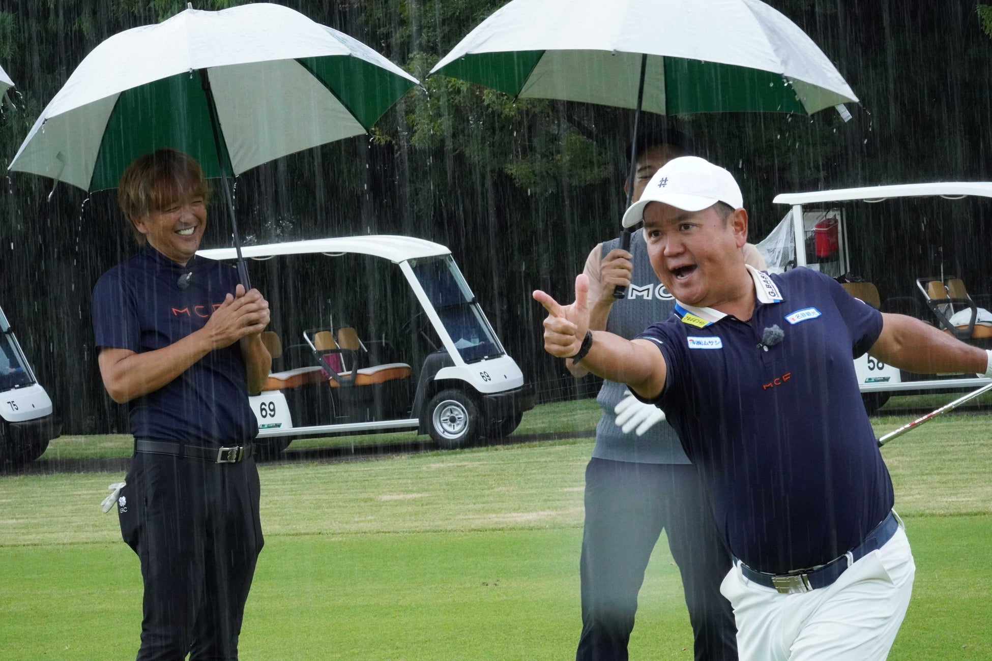 博多華丸さんがMCを務める「ギア猿」は、2025年に8年目を迎える人気のゴルフギア情報番組。そして2023年6月にスタートした「ゴルフメンタリー・サンドウィッチマン伊達とナイツショット!」は、近年ゴルフにどっぷりハマっているサンドウィッチマン・伊達さんと、ナイツの塙さん、土屋さんが、毎回様々なゲストを迎えて対決するゴルフバラエティー。今回はゴルフネットワークで人気の2番組出演者が初めてゴルフ場で一同に介し、番組ごとにチームを組んで対抗戦を行いました。