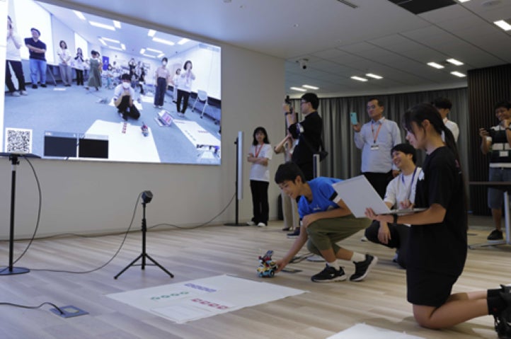 当日は、東京・高輪と仙台に集まった小中学生25名が、各拠点のインストラクターのサポートを得ながら、AIカメラによる制御技術を取り入れたロボットプログラミングを体験しました。
