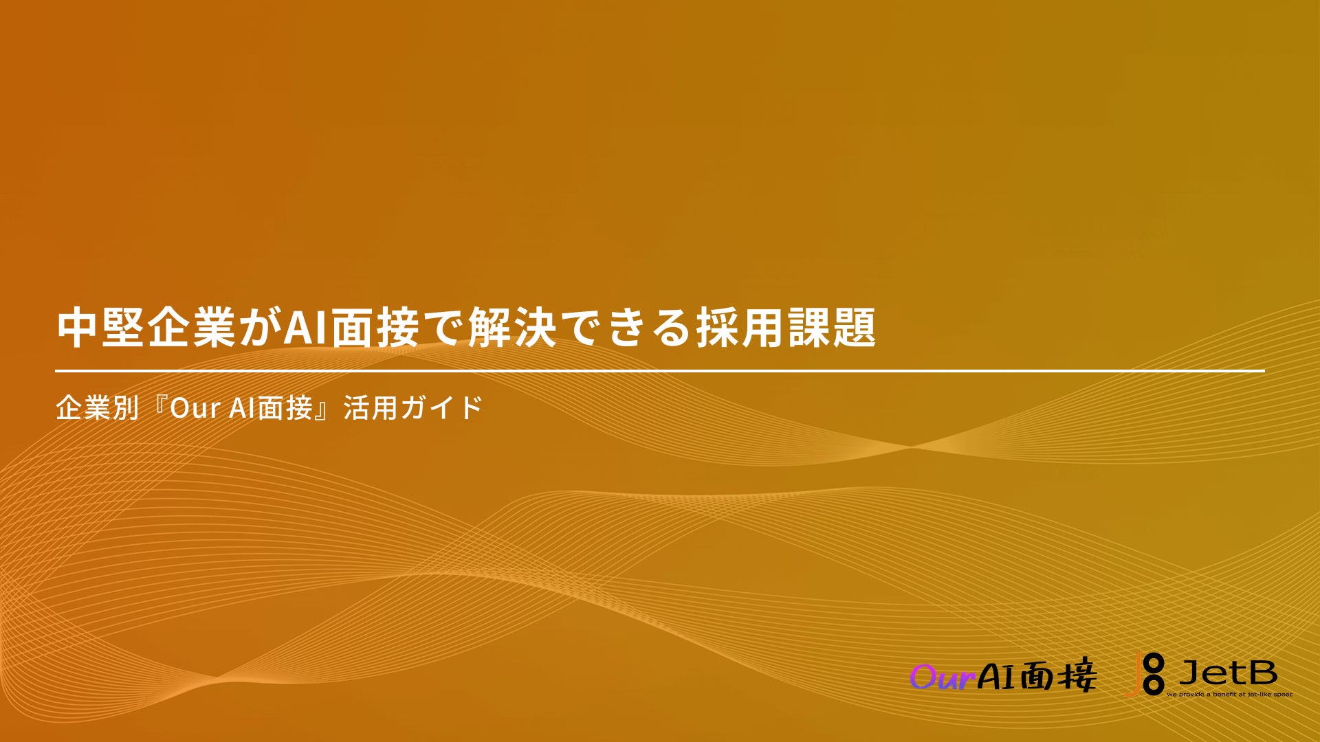 JetB株式会社(本社:東京都新宿区、代表取締役:竹内勇人、以下「JetB」)はこの度、採用活動に悩む中堅企業様に向けてAI面接を用いた課題解決の方法をまとめた資料を無料公開しました。