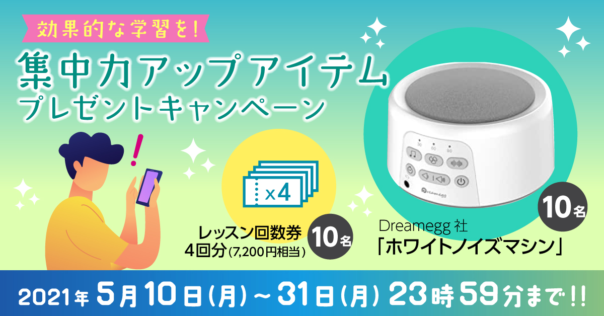 株式会社ポリグロッツ(本社:東京都新宿区、代表取締役:山口隼也)は、英語学習アプリ POLYGLOTS にて MyRecipe プランをご契約いただいたお客様を対象に、抽選で10名の方に Dreamegg社製品「ホワイトノイズマシン」、10名の方にPOLYGLTOS オンラインレッスン回数券 4回分(7,200円相当)をプレゼント致します。