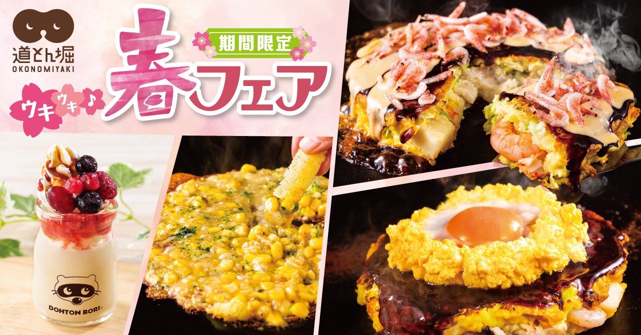 お好み焼「道とん堀」( https://dohtonbori.com )は、2023年3月8日(水)より、「うまい棒コン ポタもんじゃ」や「春の桜エビ上ミックス」など、春の季節限定メニューを発売中です。