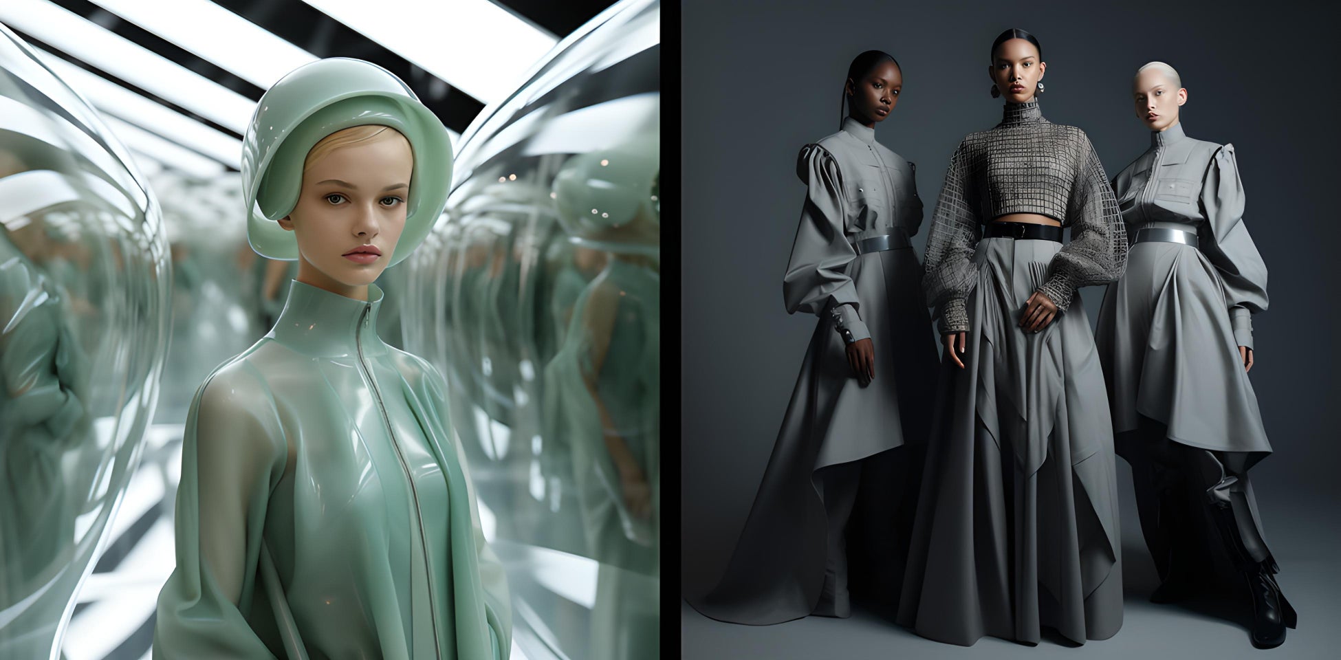 今回開催が決定したデザインコンテストのテーマは、「既存のデザインウェアにマッチした”アクセサリー”」です。コンテスト参加者には、人とAIが創る未来のファッションブランド「accelerando.Ai (アッチェレランドドットエーアイ)」のLookBookにも掲載している下記画像のデザインにマッチした(似合う)アクセサリーを生成AIを活用してデザインしていただきます。