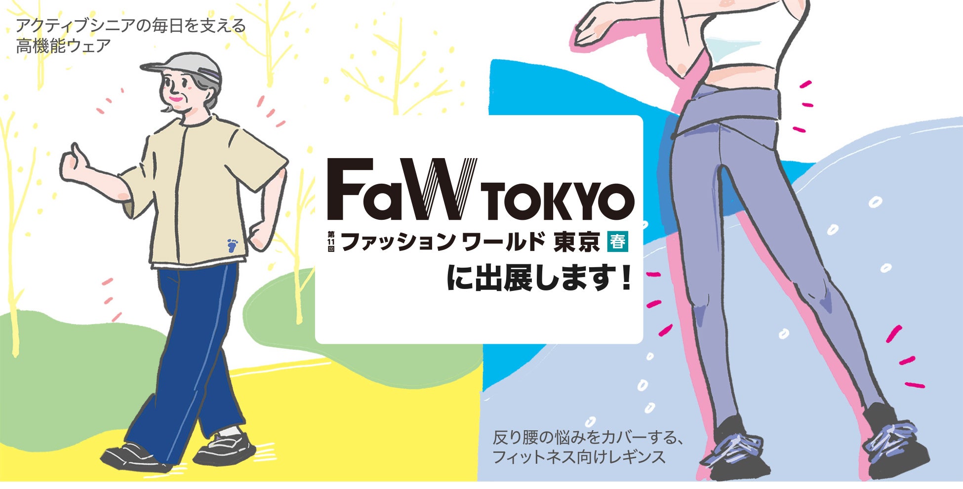 水泳・介護用品メーカーの「フットマーク株式会社」(本社:東京都墨田区、代表取締役社長:三瓶 芳)は4月17日~4月19日、東京ビッグサイトにて開催される「第11回ファッションワールド 東京(春)」に出展し、2つの新商品を発表いたします。手先が不自由・トイレに失敗してしまう方も着られるアクティブシニア向けの高機能ウェアと、反り腰の体型の悩みをカバーするフィットネス向けのレギンスです。