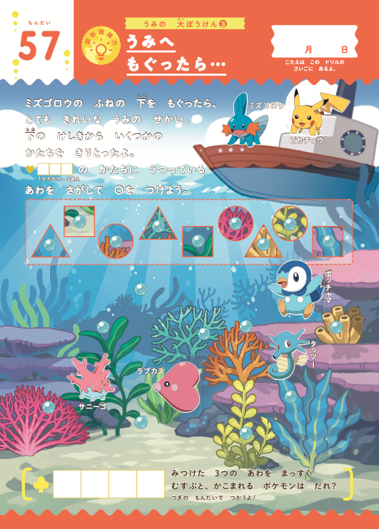 問題は、ポケモンならではの世界観を生かした図形・パズルや迷路問題で、飽きることなく進められます。