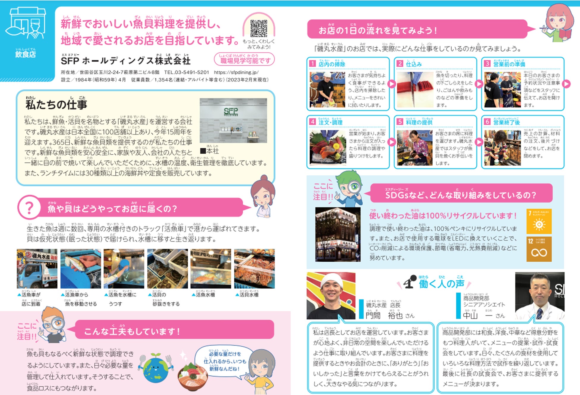 海鮮居酒屋 「磯丸水産」 などを運営する SFP ホールディングスが文部科学省が推進するキャリア教育の副教材「小学生のためのお仕事ノート」 に掲載されました!