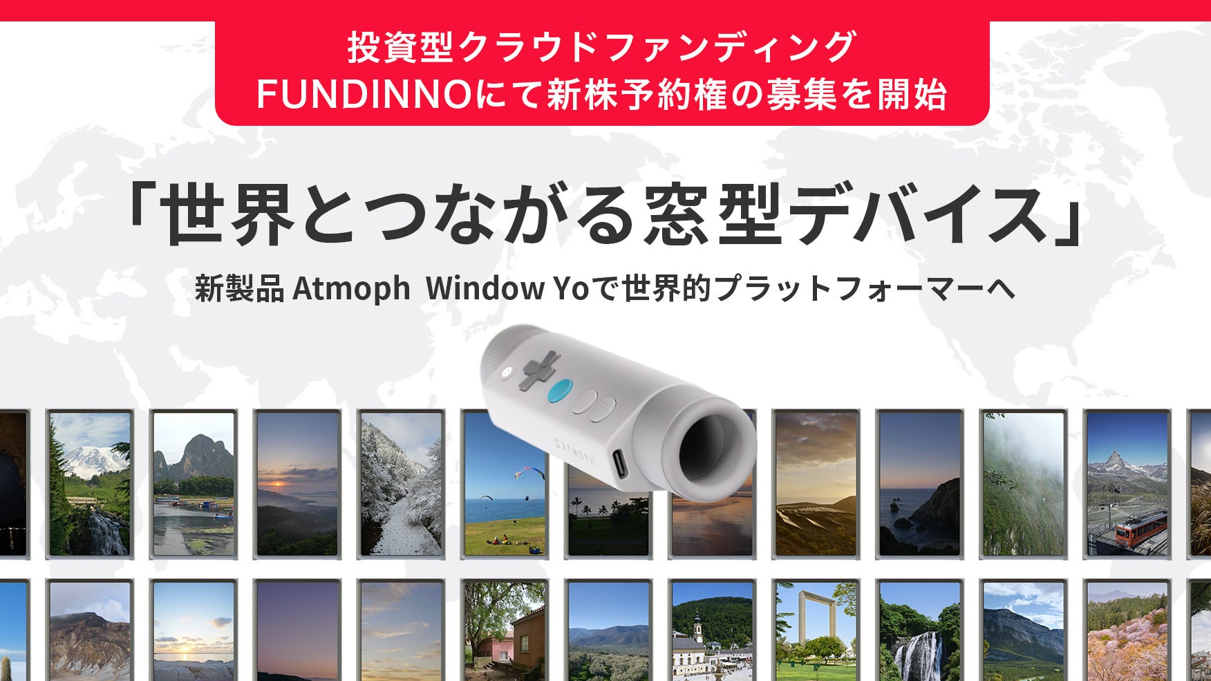 バーチャル窓「Atmoph Window」の開発・販売を行うアトモフは、国内初の投資型クラウドファンディングのプラットフォームであるFUNDINNOにて、新株予約権の募集を開始いたします。