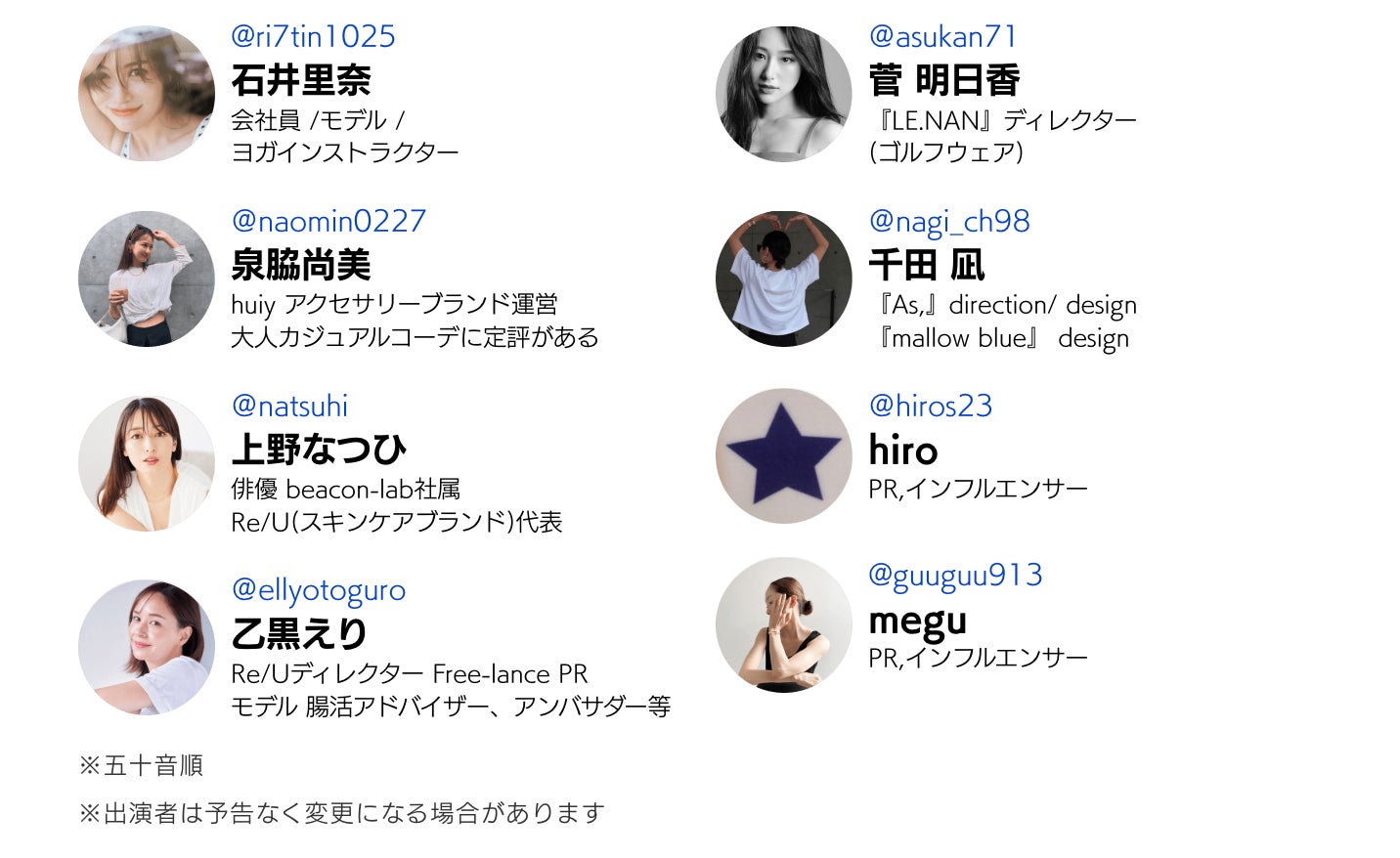 ■参加予定のインフルエンサー、ファッション関係者