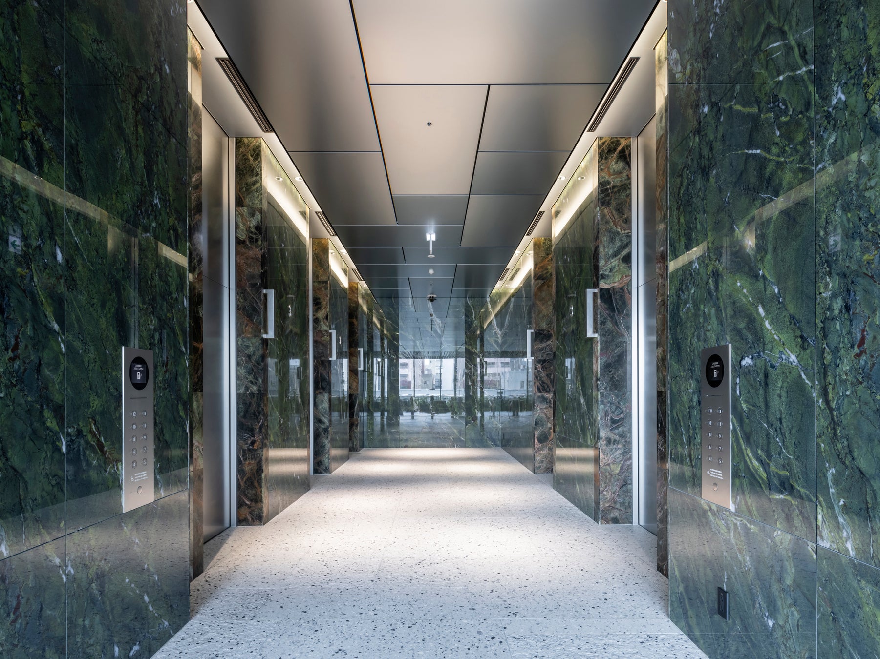 積水ハウス株式会社、⻄⽇本鉄道株式会社、⻄部瓦斯株式会社、株式会社⻄⽇本新聞社、福岡商事株式会社の5社で構成した大名プロジェクト特定目的会社による「福岡大名ガーデンシティ」は、2021年にオープンした「天神ビジネスセンター」に続く、福岡市・天神で進む再開発促進事業「天神ビッグバン」の第2号高層ビルとして、昨年6月、旧⼤名⼩学校跡地にグランドオープンしました。「福岡大名ガーデンシティ」オフィスフロアは、フロア面積約2,500㎡をほこる自由度の高い空間、国際規格の多重セキュリティ設備など入居企業をサポートする様々な機能を持ち、グローバルな人材と企業が集積・交流できる高機能オフィスとなっています。