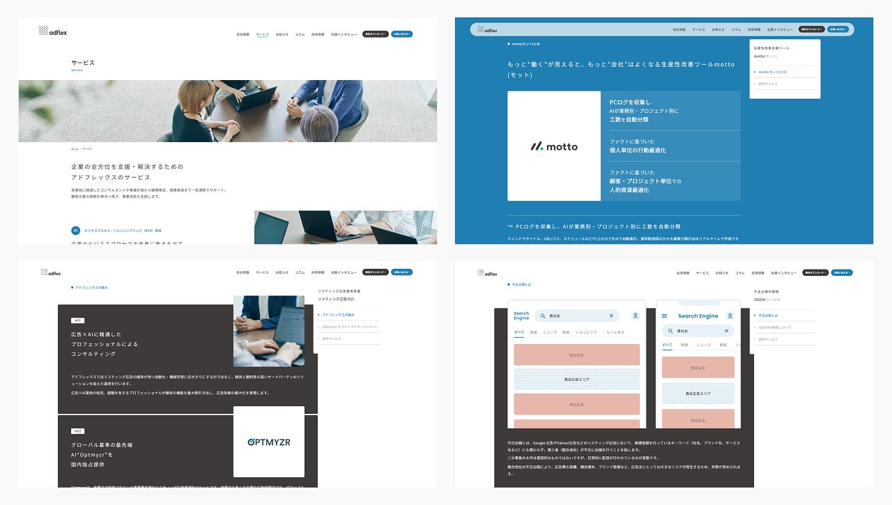 当社が提供している「motto」「Optmyzr」「ISSEKI」「ODASO」など、それぞれのサービス詳細ページを追加し、より分かりやすくご確認いただけるようになりました。