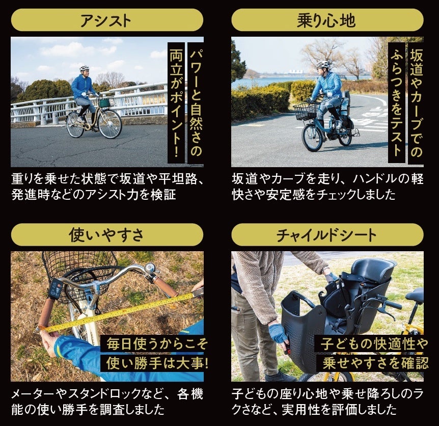 圧倒的な乗り心地の良さをプロが評価。坂道を登るときやストップ&ゴーなど、さまざまな状況のアシストが適切でふらつきはほぼ感じず。ハンドルの動きも軽快で、前輪に重い荷物を載せてカーブを走ってもスムーズでぐらつかずに曲がれました。特にペダルを強く踏む必要のある坂道でも姿勢を乱さずにこぐことができるので、子どもに目を配りやすいのも大きなメリットです。また、チャイルドシートはすっぽり包む形状なので、保護性が高く、子どもが不意に手や足を出す心配も少なめ。肩ベルトに柔らかい素材を採用するなど、快適性も問題ないレベルです。