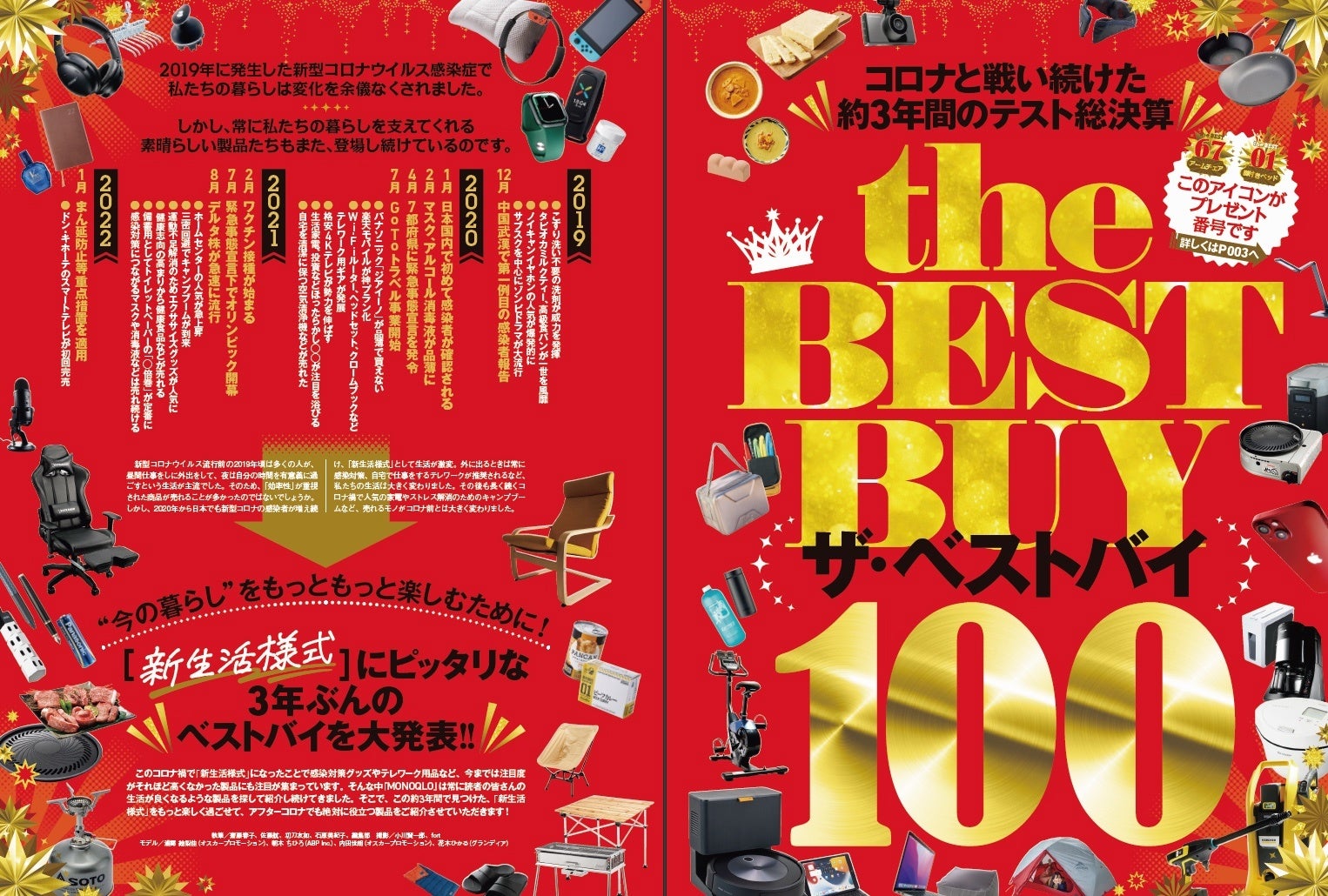 新生活様式に役立つ「ザ・ベストバイ100」を大発表! コロナと戦い続けた約3年間のテスト総決算!!【MONOQLO 2022年5月号】