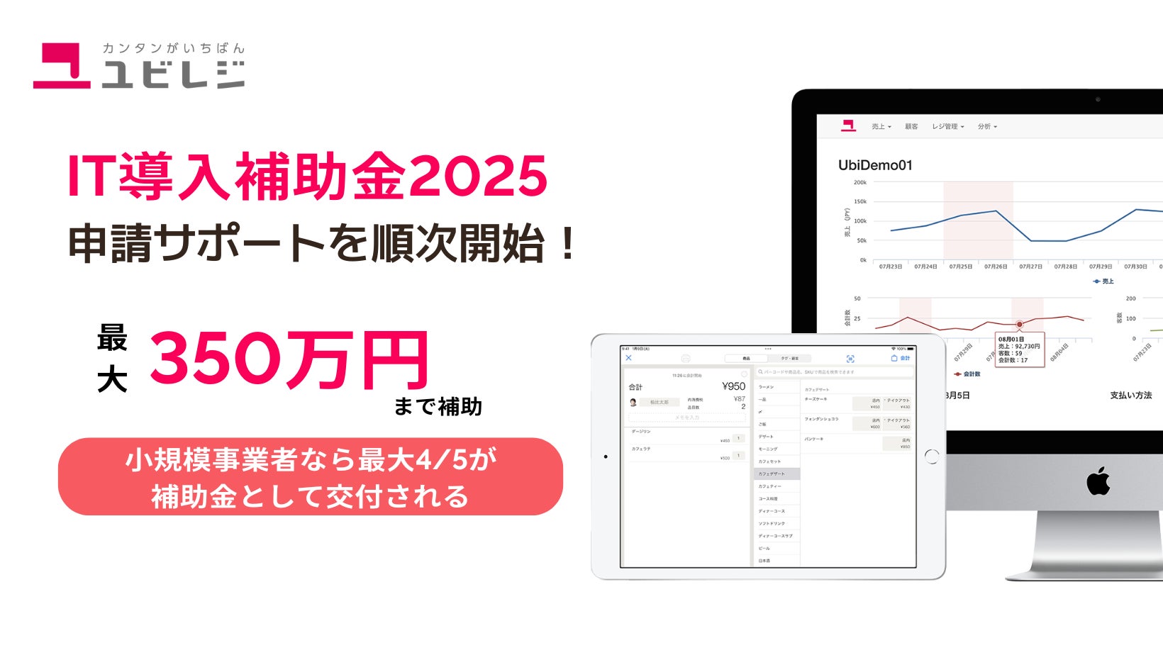 “カンタンがいちばん”がコンセプトのクラウドPOSレジ「ユビレジ」を提供している株式会社ユビレジ(本社:東京都渋谷区、代表取締役:木戸啓太)は、経済産業省が中小企業や小規模事業者の労働生産性向上を目的に推進する「IT導入補助金制度」を活用して「ユビレジ」を新規で導入する事業者を対象とした申請サポートを今年度も提供、4月より順次受付いたします。