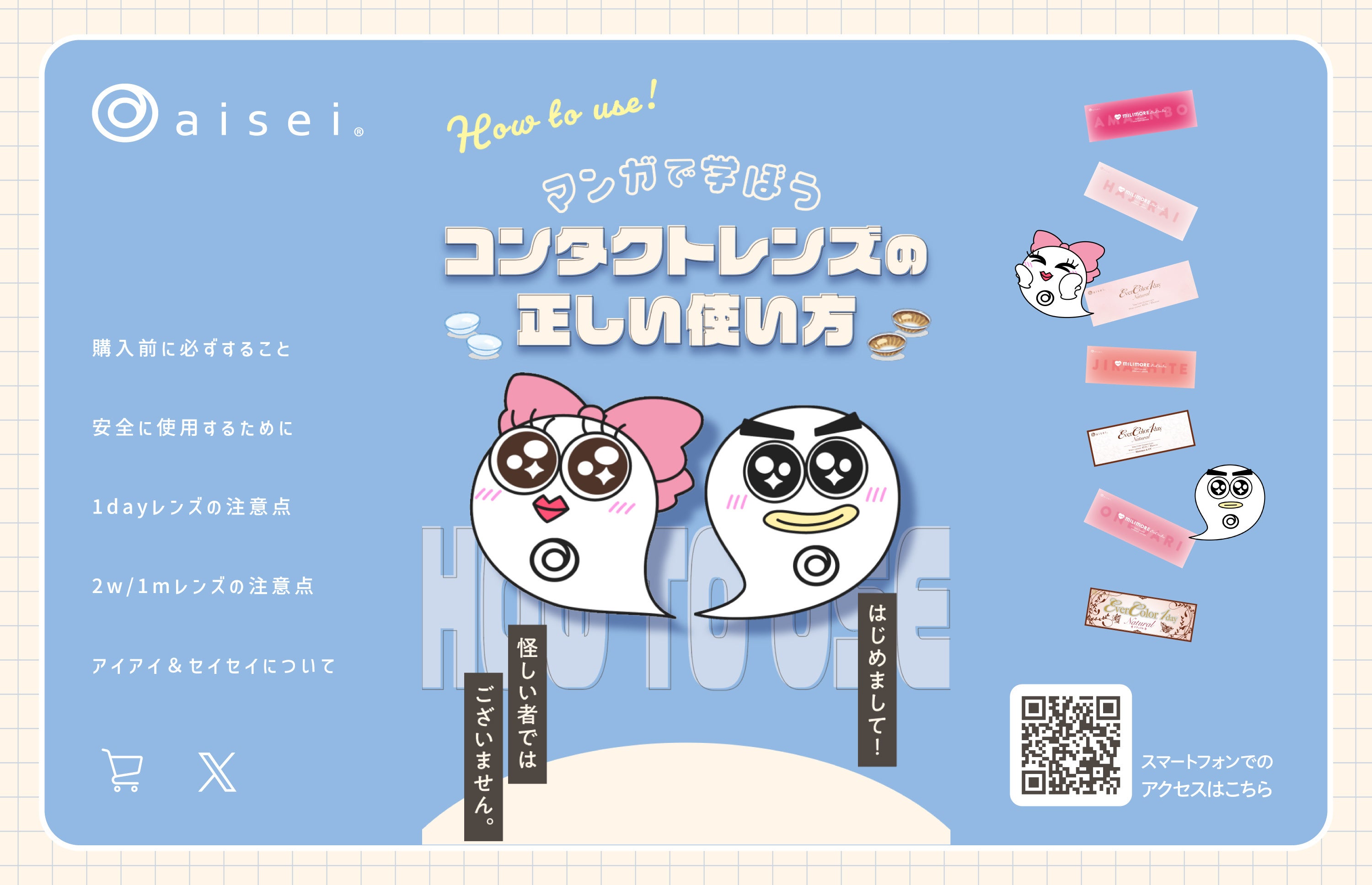 当社広報キャラクターの「アイアイ」と「セイセイ」がコンタクトレンズを安全に使うための正しい知識やケアの方法を、4コママンガで分かりやすく教えてくれる特設サイトを公開。
