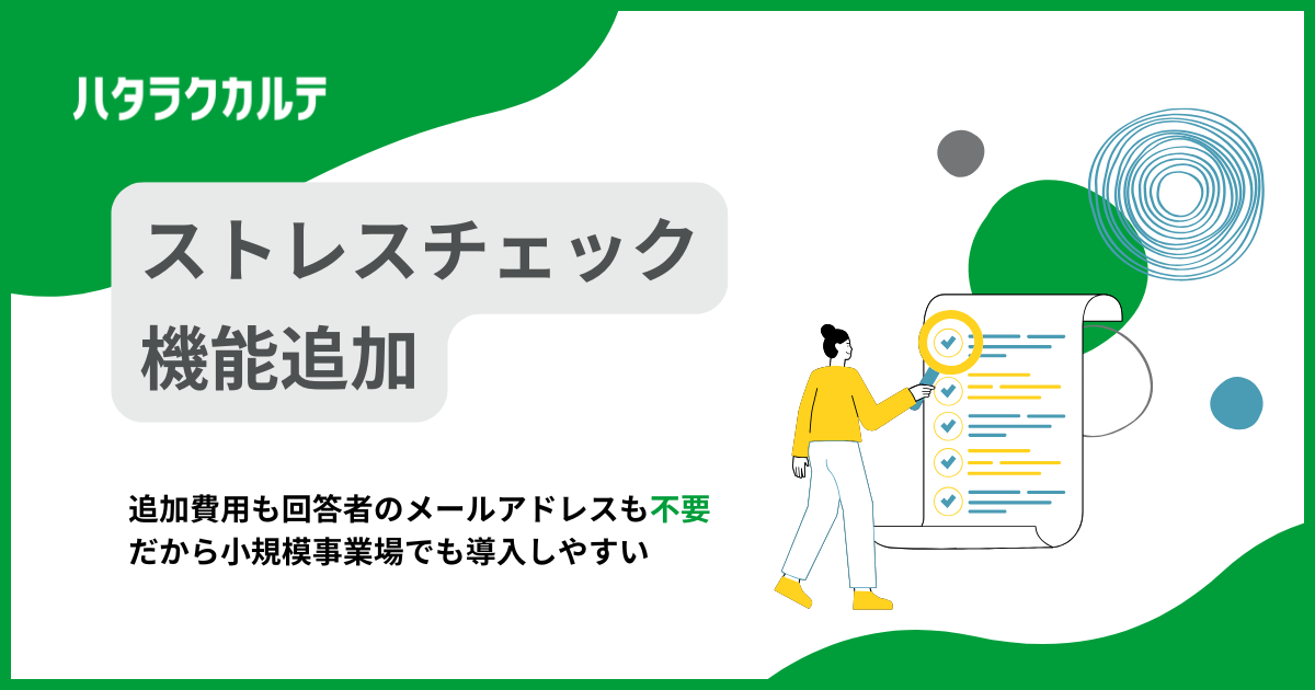 このように、企業におけるメンタルヘルス対策の重要性の高まりを受け、小規模事業場のみなさまもストレスチェックを実施しやすい環境構築に寄与すべく、このたび意識調査・組織課題改善サービス「ハタラクカルテ」にストレスチェック機能を追加いたしました