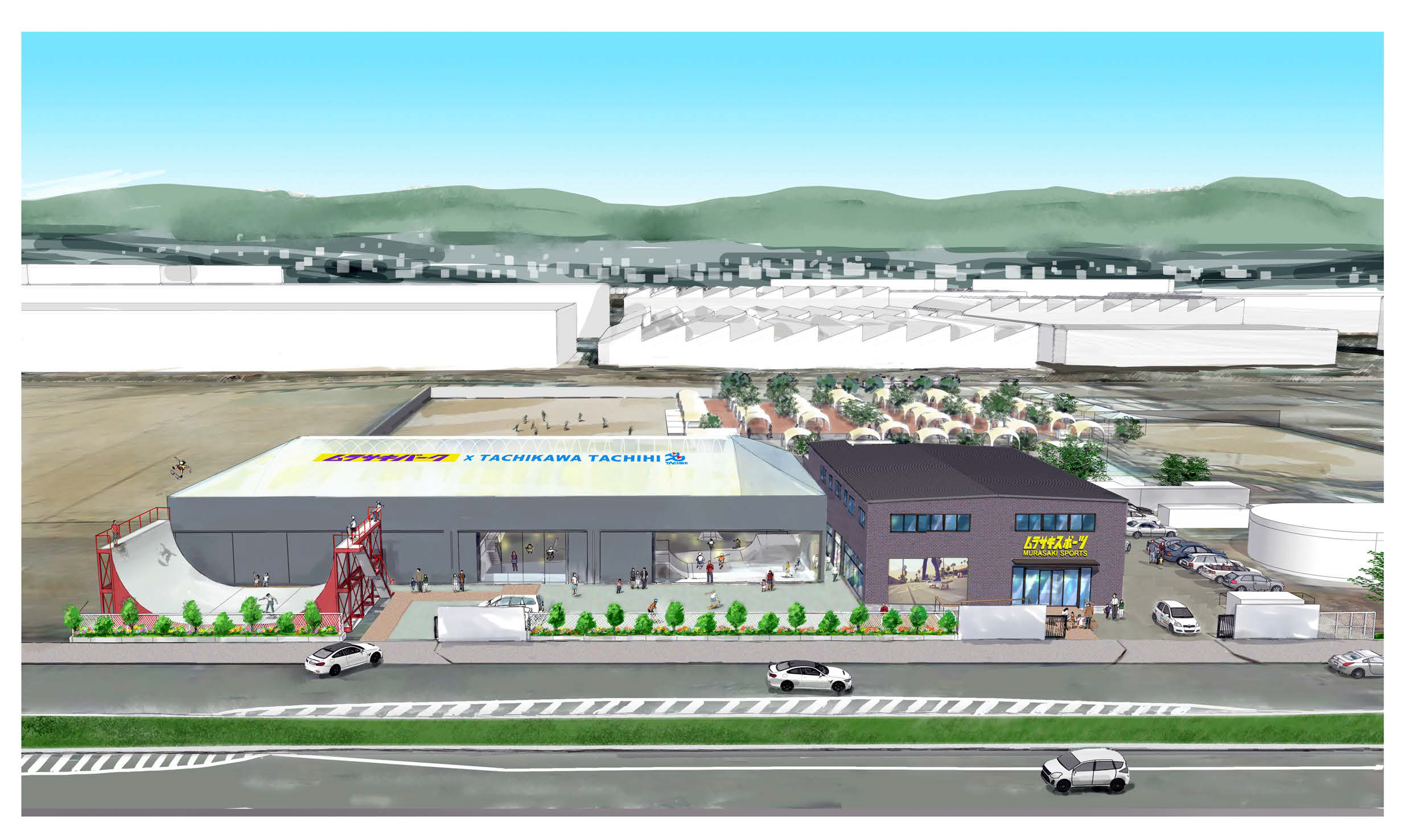 ムラサキスポーツが総力をあげて新たにプロデュースするスケートパークと大型ムラサキスポーツが融合した施設「ムラサキパーク立川立飛」2023年7月中旬オープン‼